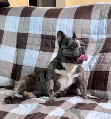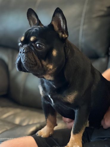 Chewy is our 22lb Black and Tan micro Frenchie. He is a proven sire and has fathered beautiful puppies. We really canβt say enough about this boy! π. Small compact size, excellent confirmation and loyal personality. He will follows me with his whole heart wherever I go. Chewy loves snuggles and kissing.